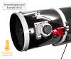 Temperatursensoranschluss für optionale externen SensorSESTO SENSO 3 unterstützt die Temperaturkompensation bei Verwendung mit der optionalen externen Temperatursonde und ermöglicht so die Berechnung der Verschiebung der Fokusposition bei Änderungen der Umgebungstemperatur während der Nacht. Sobald die Sonde angeschlossen ist, können Sie direkt in PLAY eine Temperaturkalibrierung durchführen, um die Korrelation zwischen Temperatur und Fokusverschiebung zu bestimmen. Nach der Kalibrierung kann die Temperaturkompensation automatisch durch PLAY oder durch Software von Drittanbietern über den ASCOM-Treiber angewendet werden, wodurch ein stabiler Fokus während langer Fotoserien gewährleistet ist - selbst bei Teleskopen schneller als f/3 und unter schwankenden Umgebungsbedingungen.
