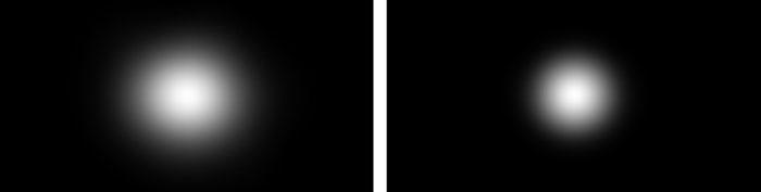 Alle diese Effekte lassen den Stern schnelle Positionsänderungen durchführen - siehe Animation links. Das Ergebnis ist ein aufgeblähter Stern und auch nicht die volle mögliche Auflösung im Objekt. Feine Strukturen verschwinden.
