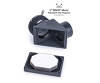 Here, the eyepiece side accessories are clamped over the whole area. In opposite to locking screws, the eyepiece or adapter is centered exactly on the optical axis and not pressed against the opposite surface.