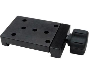 Quick relase mount for dovetail bar accessories. Locks rock-solid: Pressure is not applied by the tip of a screw but by the full surface of the dovetail bar.