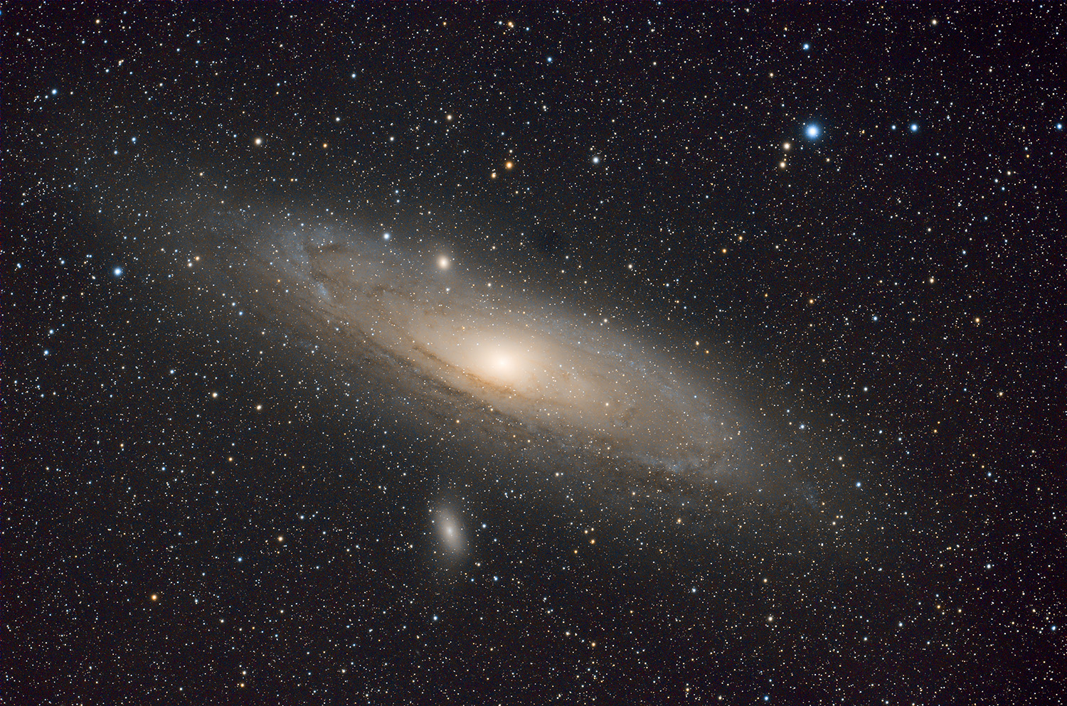 Data for image: Object: Andromeda Nebula M 31 Imaging device: TS Optics Imaging Star 71 Apo Camera: Canon EOS 6D (mod), 1000 ASA Scale: 5.475 arcseconds/pixel Image at TS reduced to half size for space reasons